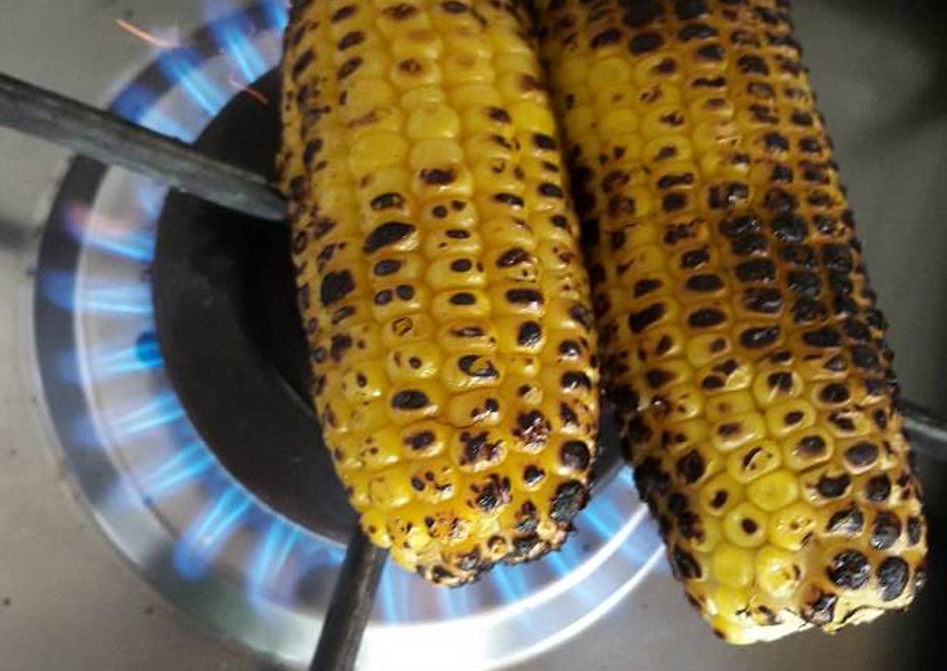 - Then simply char it straight on the stove to your liking. It might seem like the corn will pop like popcorn with all the noise. But worry not, it won't :)