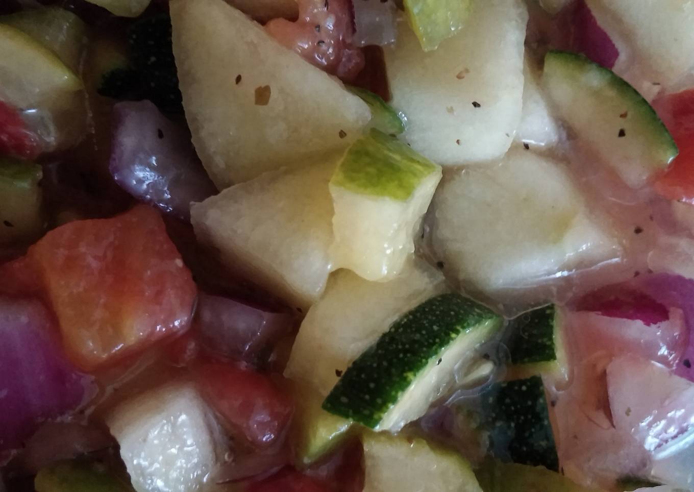- Mix together in separate bowl oil, lemon juice, and apple cider vinegar whisk together until well blended.
